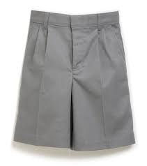 Boys Pleated Short. 8 3/4 oz. post cured twill. 65/35 poly-cotton blend. Permanent press and stain release. Fold over cloth waistband. Belt loops. 2 pleats on each side of fly. 2 front pockets and 1 back pocket. Blind stitch hem. Serged seams.