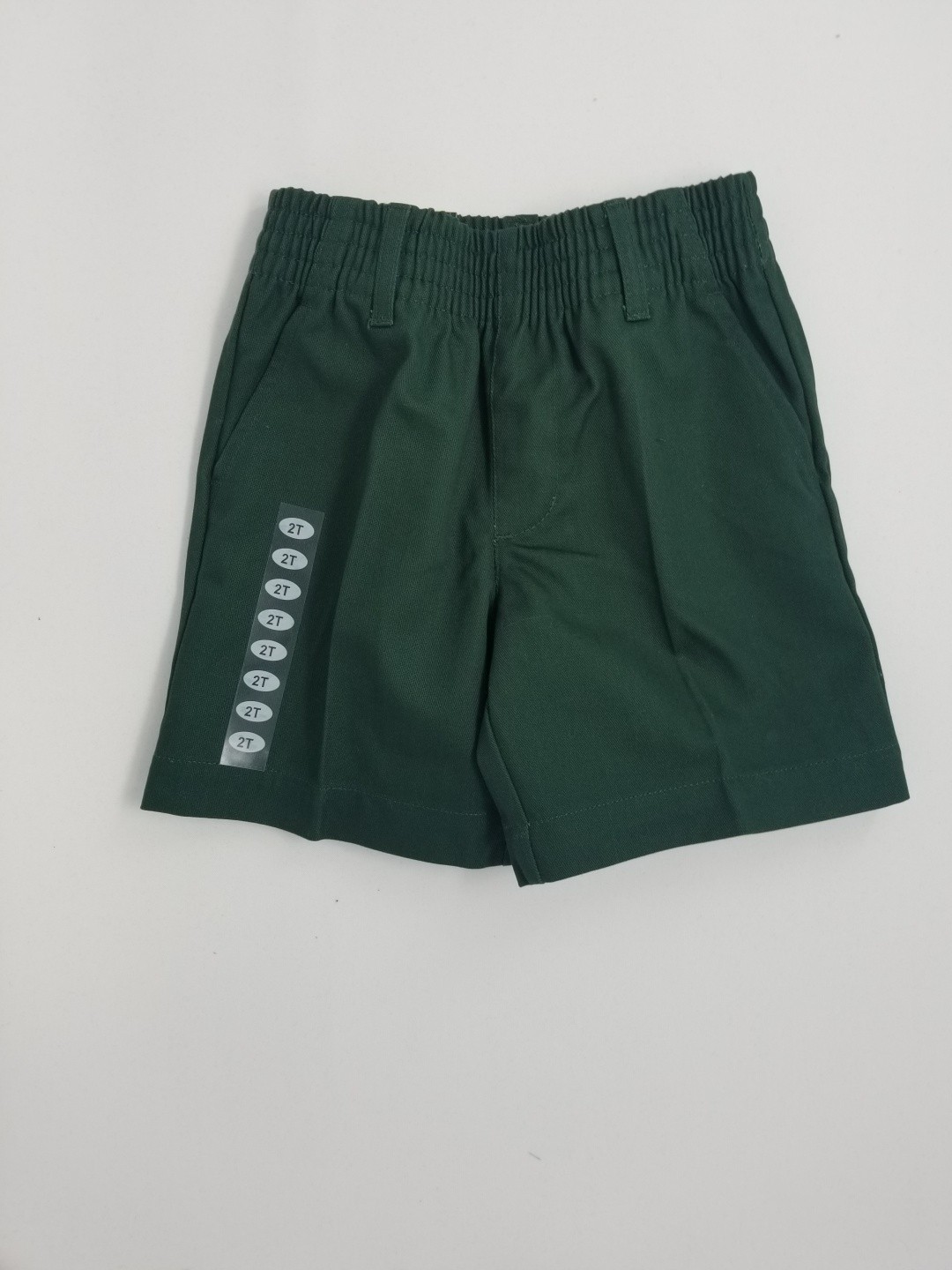Boys Pleated Short. 8 3/4 oz. post cured twill. 65/35 poly-cotton blend. Permanent press and stain release. Fold over cloth waistband. Belt loops. 2 pleats on each side of fly. 2 front pockets and 1 back pocket. Blind stitch hem. Serged seams. - Reviews
