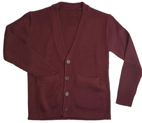 Pocket Cardigan. Pill-trol acrylic smooth knit sweater with v-neck. Button front. Double stitched button holes. Full bar tacking in stretch areas. Seed stitch elastic cuffs and bottom. One year guarantee.