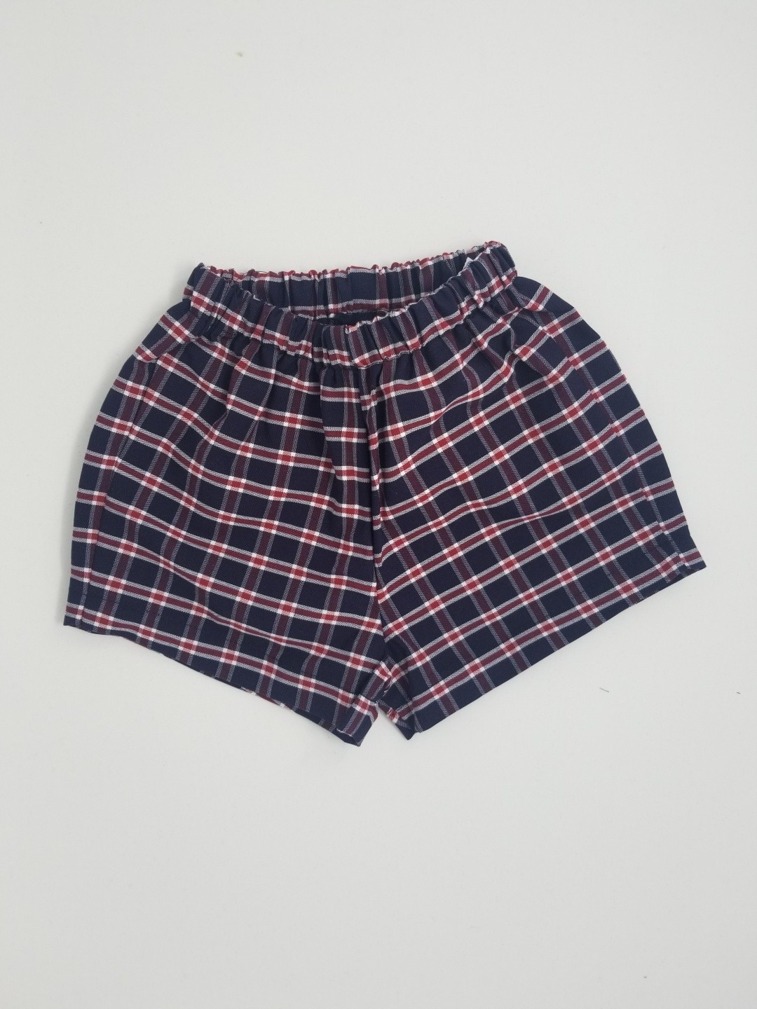 Girls Modesty Short- plaid modesty shorts to be worn under a skirt or jumper. All-around elastic waist. No pockets. Short length, so as not to show below hem of jumper/skirt.