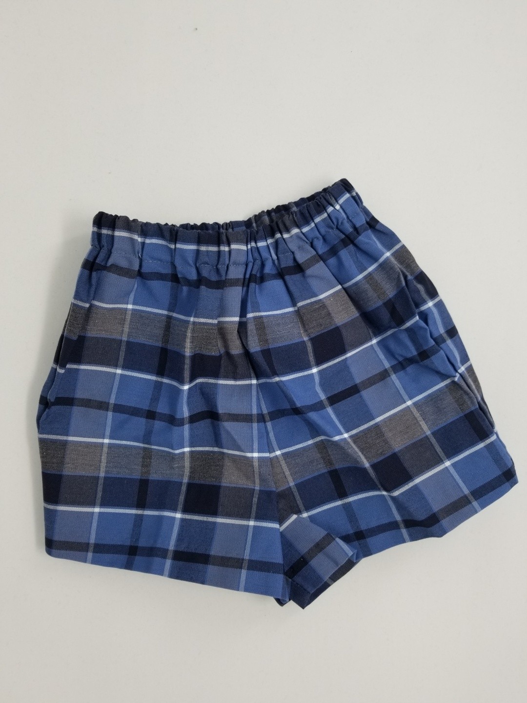Girls Modesty Short- plaid modesty shorts to be worn under a skirt or jumper. All-around elastic waist. No pockets. Short length, so as not to show below hem of jumper/skirt.