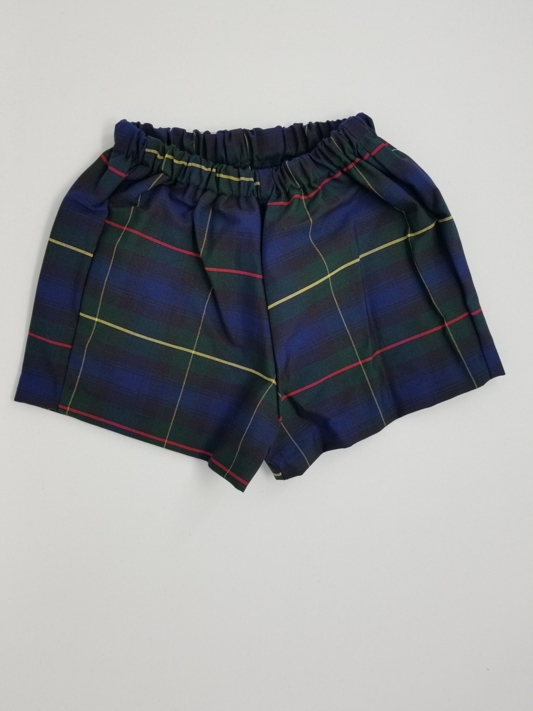 Girls Modesty Short- plaid modesty shorts to be worn under a skirt or jumper. All-around elastic waist. No pockets. Short length, so as not to show below hem of jumper/skirt.