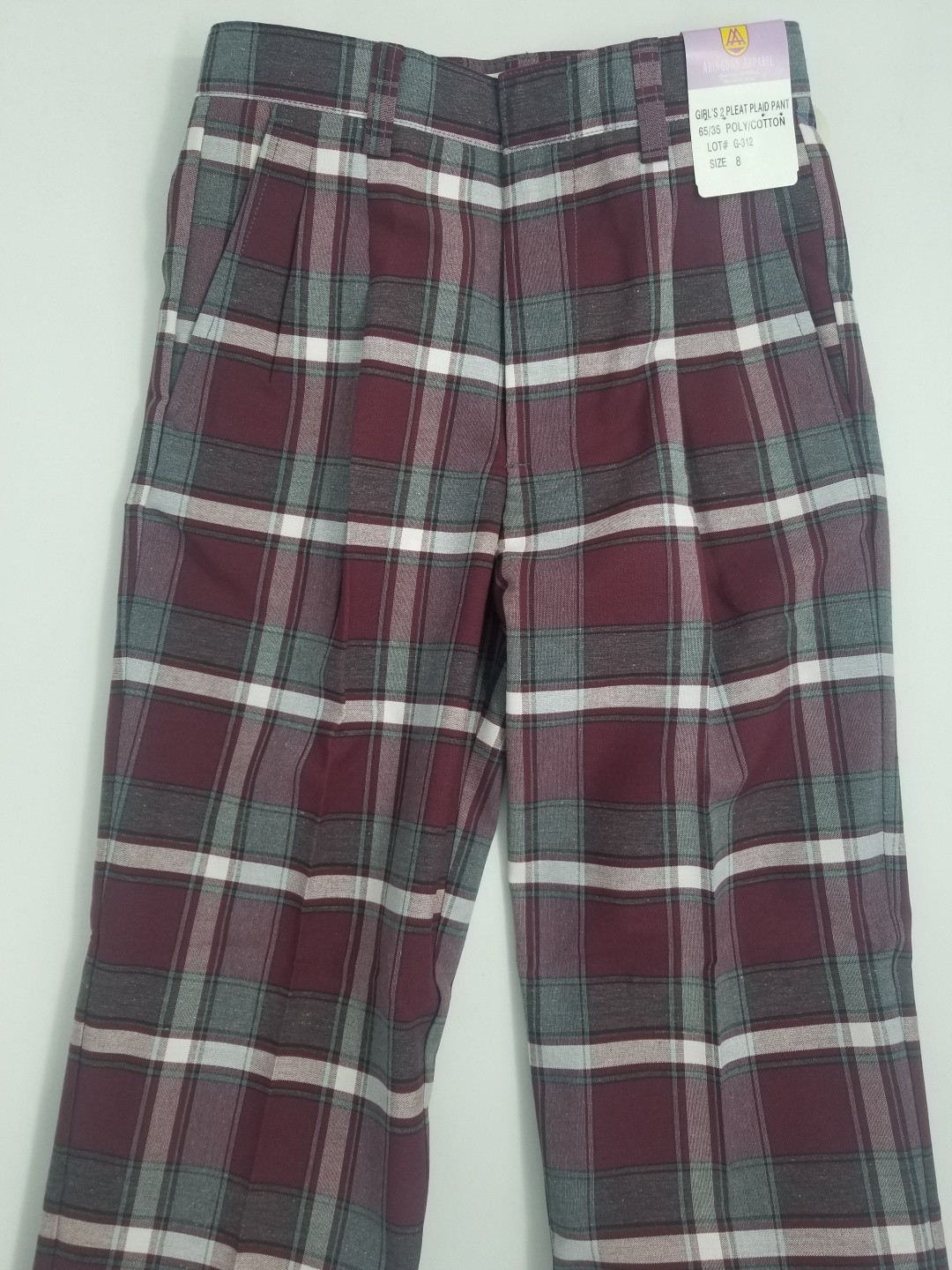 Girls Plaid Pants- Flat Front. Permanent press. Stain release. Belt loops. Flat front styling with no pleats. 2 front pockets. Blind stitch hem. Straight leg. - Reviews
