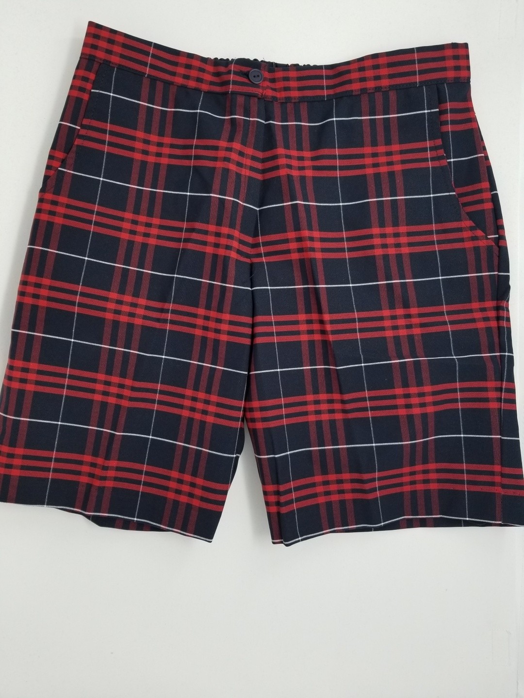 Girls Plaid Shorts. Uncuffed twill walking shorts. Uniform length. Straight leg.