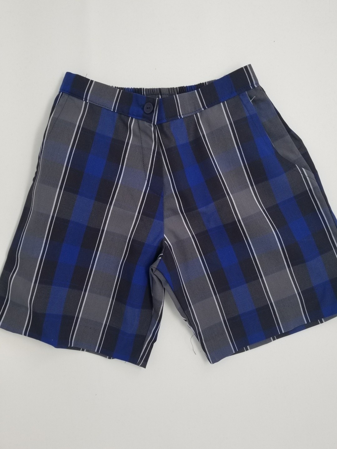 Girls Plaid Shorts. Uncuffed twill walking shorts. Uniform length. Straight leg.