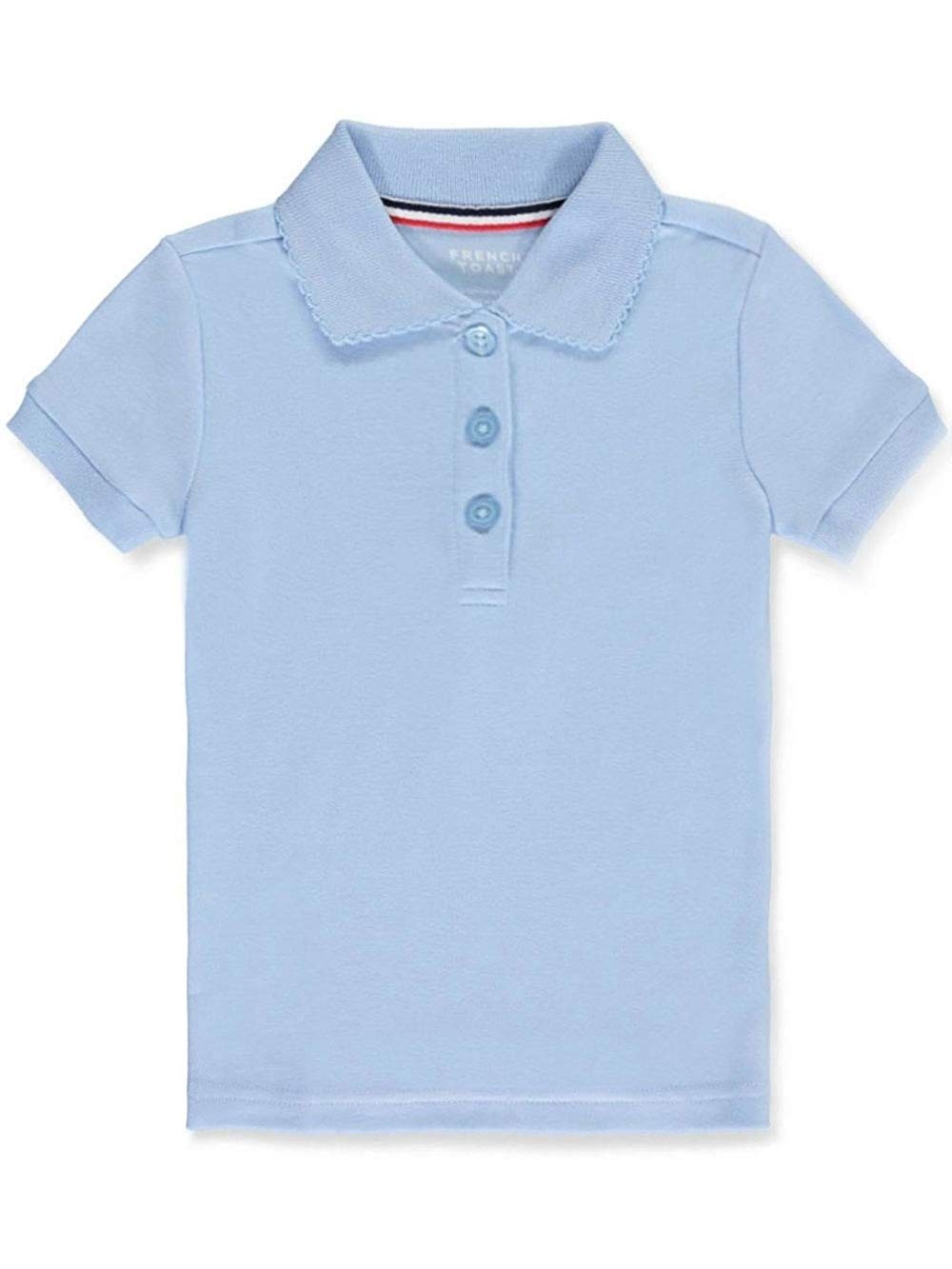 Girl Fancy Collar Knit Shirt- Short Sleeve. 60/40 poly-cotton knit shirt. 3 button opening. Picot trim on collar and sleeves. Brand may vary.
