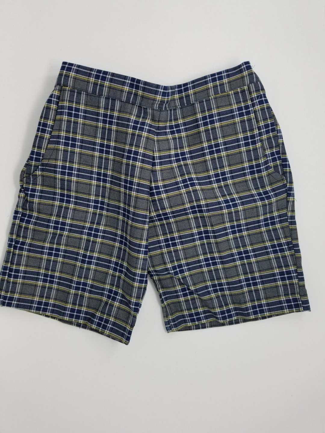 Girls Plaid Shorts. Uncuffed twill walking shorts. Uniform length. Straight leg.