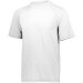 6 oz. heavyweight 50/50 poly-cotton blend material. Athletic, unisex cut. Seamless rib collar with double needle trim. Double needle sleeve and bottom hem. Stain resistant. Machine washable.