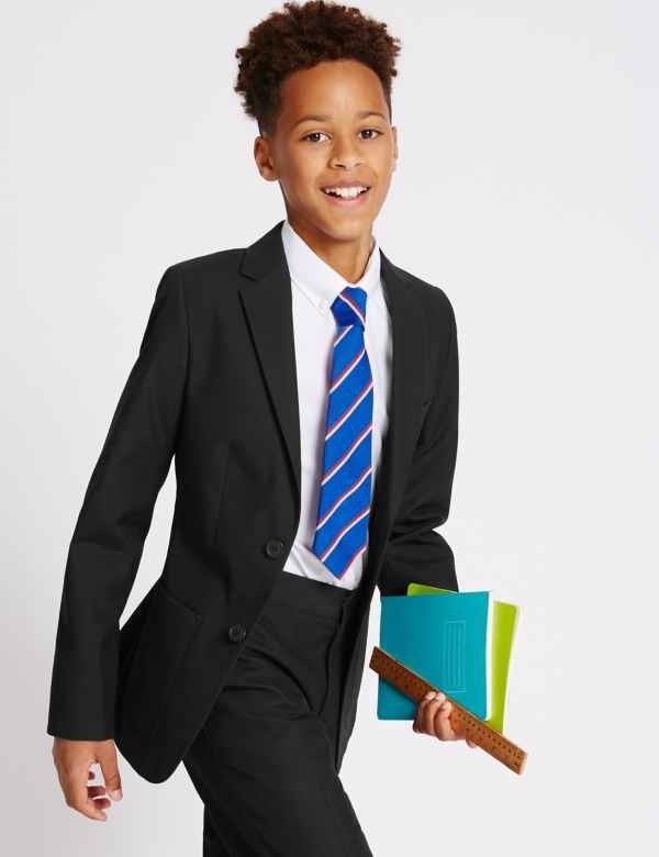 Blazer features front lower patch pockets with flaps, a top welt pocket and an inside pocket for valuables. Made from durable and machine-washable 100% Polyester fabric. Buttons on front and on sleeves are brass/gold. Will include New Hope School patch on left chest. - Reviews