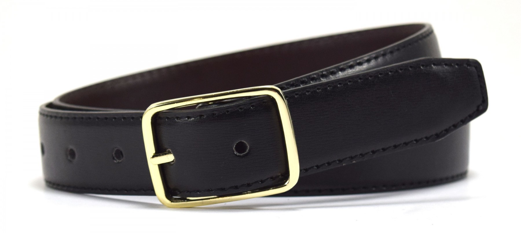 Reversible Leather. Solid leather belt with traditional brass belt closure. Reverses to a contrasting color when you flip it.