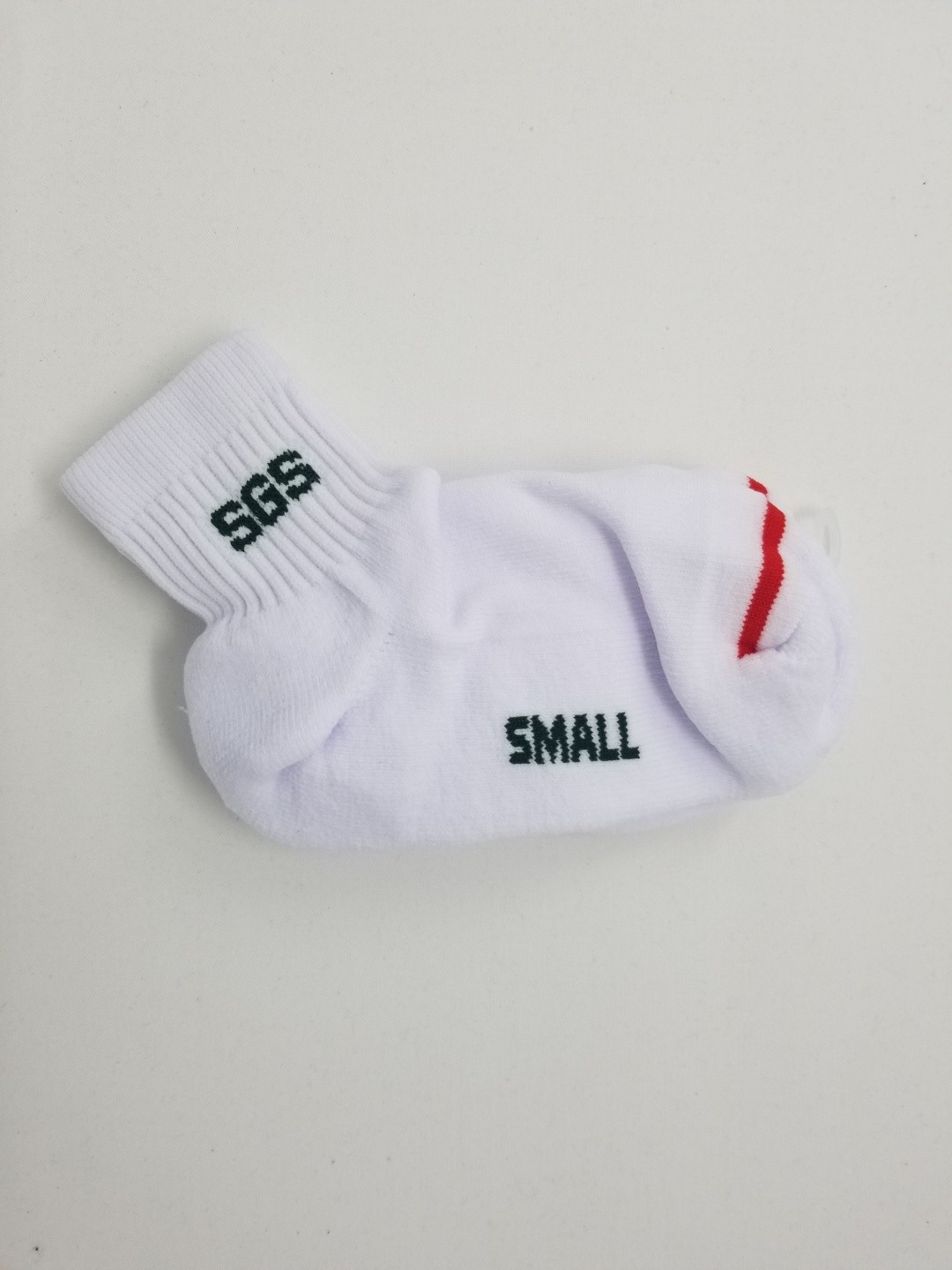 School Logo Socks. 80% Ultra White High Bulk Acrylic / 20% Stretch Nylon. Features your school's own exclusive design!