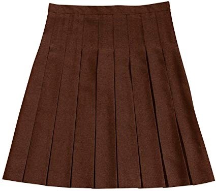 Stitch Down Pleat Skirt- Style 11. Pleated skirt with pleats stitched down 2-4" based on size for a flattering look across hips. Side zipper and side button. 3” to let out at hem as student grows.