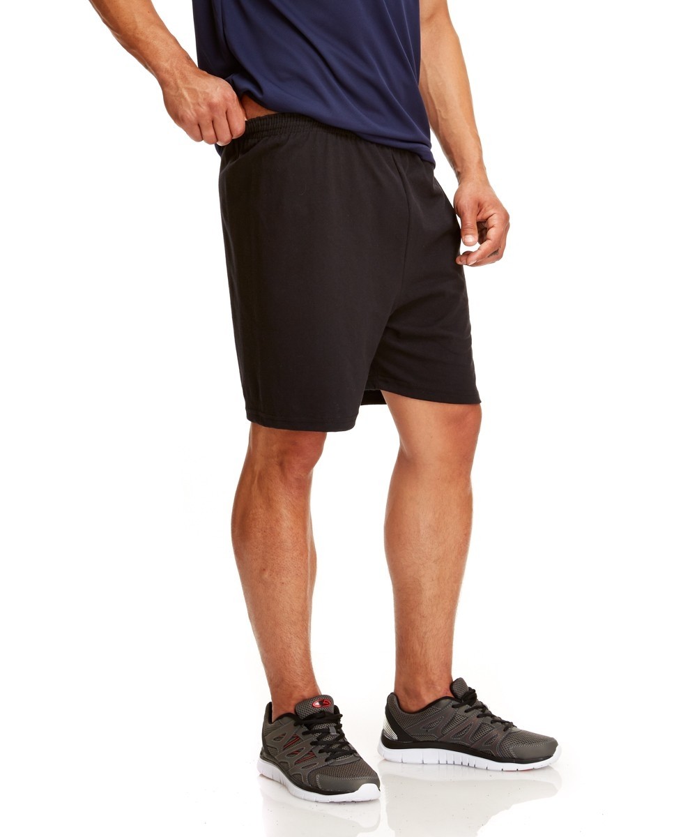 5.3 oz. heavyweight 50/50 preshrunk poly-cotton blend jersey material. Full athletic cut. Four needle covered elastic waistband. Does not shrink.
