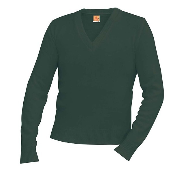V-Neck Pullover. Pill-trol acrylic smooth knit sweater with v-neck. Full bar tacking in stretch areas. Seed stitch elastic cuffs and bottom. One year guarantee.